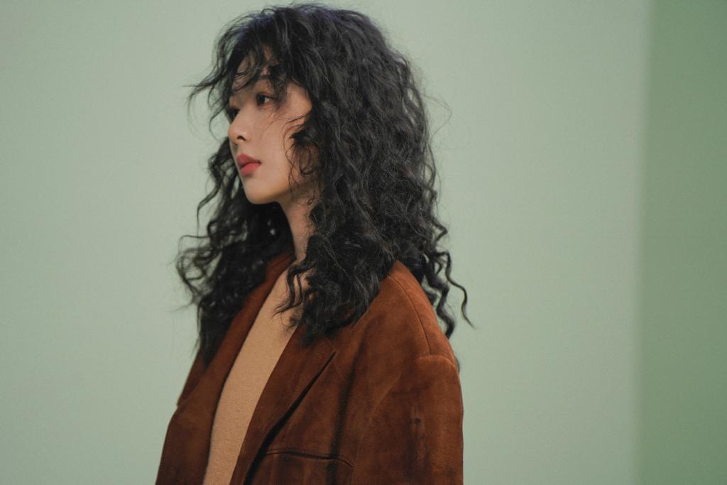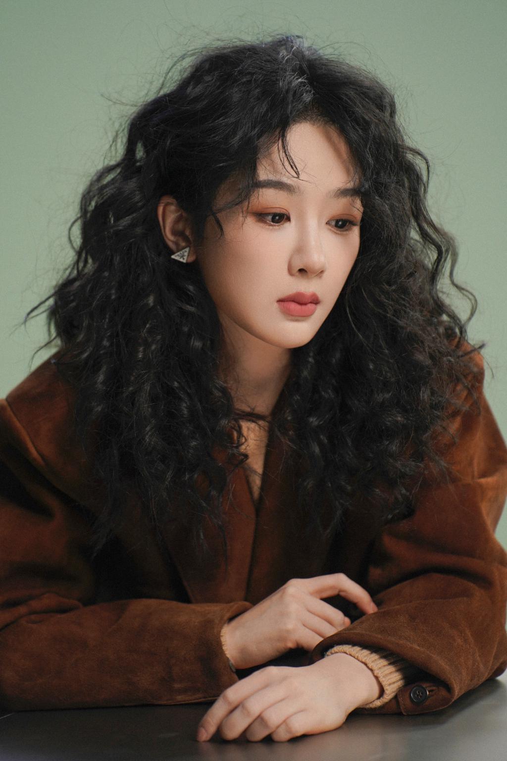 杨紫的一组美照曝光,她换上羊毛卷发型搭配奶茶色系妆容,穿棕色麂皮西装外套,港风范十足。
