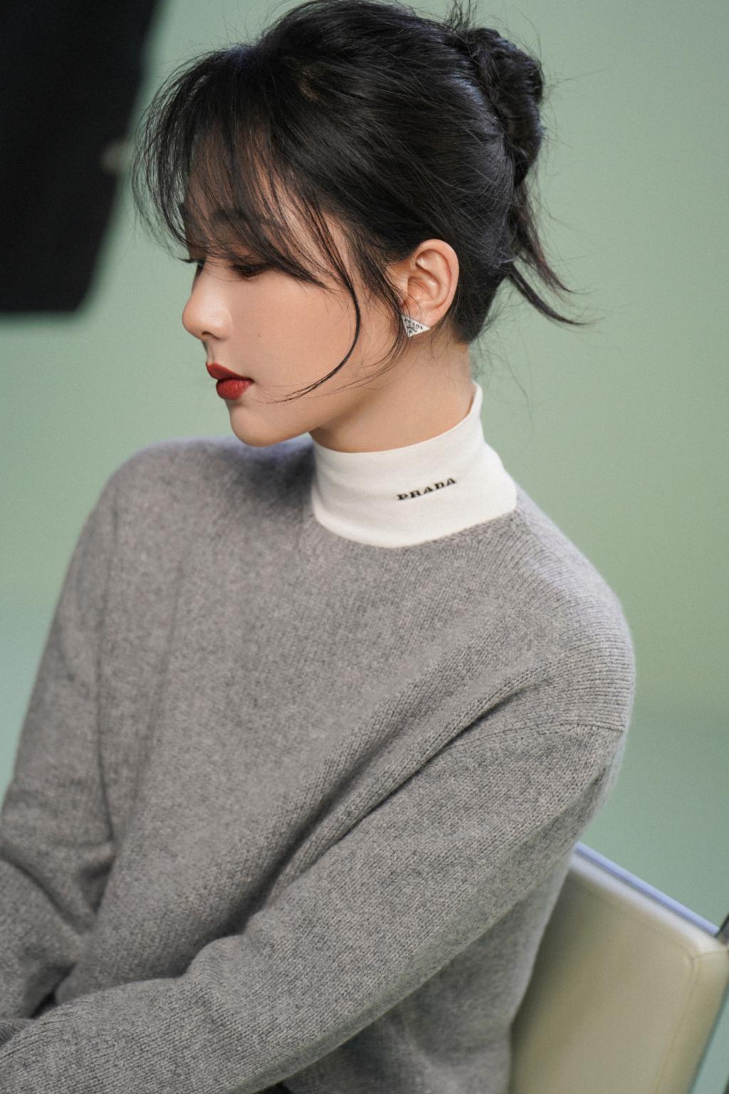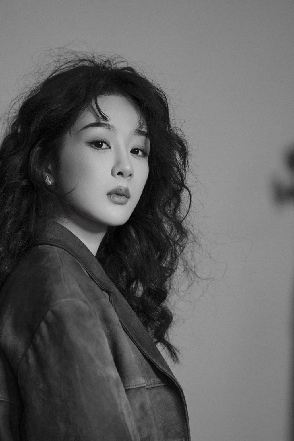 杨紫换羊毛卷发型配麂皮西装 港风范十足