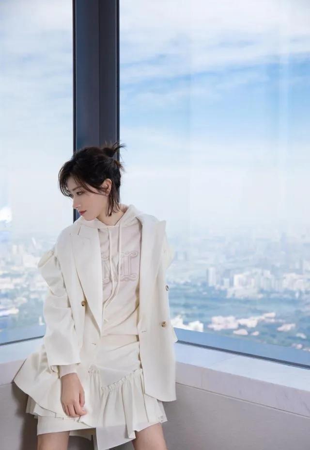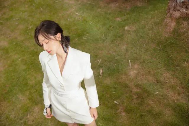 - 杨紫换羊毛卷发型配麂皮西装 港风范十足