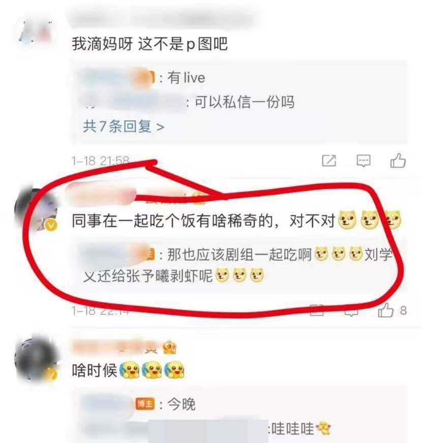 这不就是恋爱实锤了?更好笑的是有人还给他们找借口呢,说他们只不过是朋友约饭而已,然后偶遇的人表示:那刘学义还被张予曦剥虾呢,这可不是随便谁约饭就会做的事情!