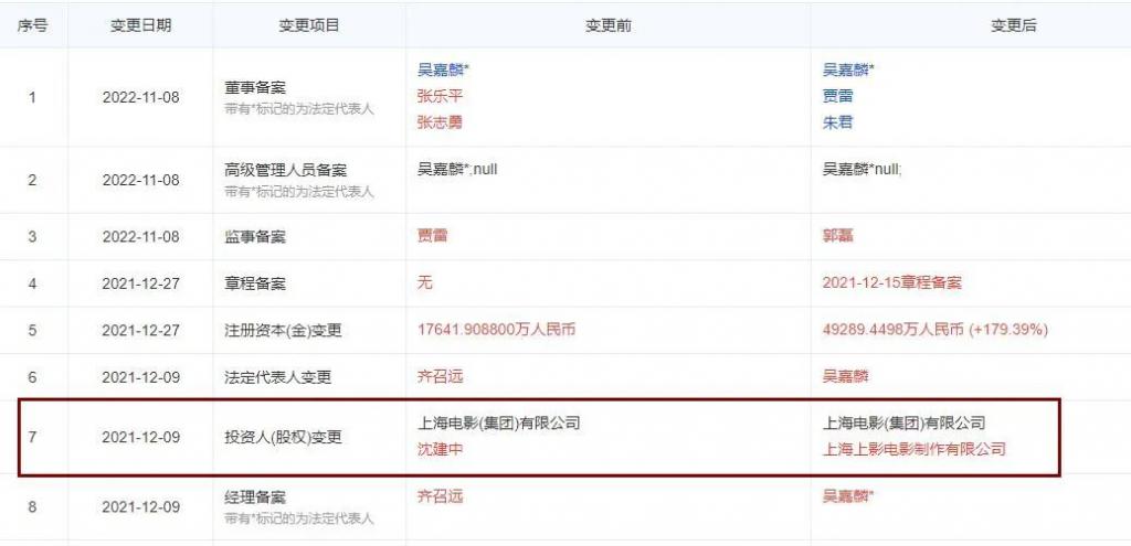 2021 年 1 月 5 日,昊浦影视文化公司的股东再次发生变更,原有股东陈作涛、刘育成变更成了陈作涛、沈建中,刘育成的股权全部转让给了新股东沈建中。巧合的是昊浦影视基地对面的上海影视乐园总经理也叫沈建中,而上海影视乐园是上海电影集团在上海建设比较早的影视外景基地。