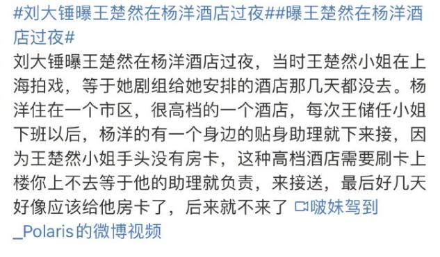 因为之前杨洋和王楚然分手的料,也是刘大锤爆的。