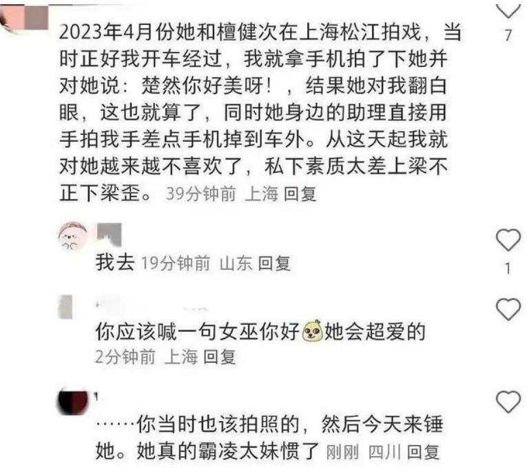 这些关于她不礼貌的爆料,时常会出现在王楚然本人的评论区以及和她相关的推送下面。