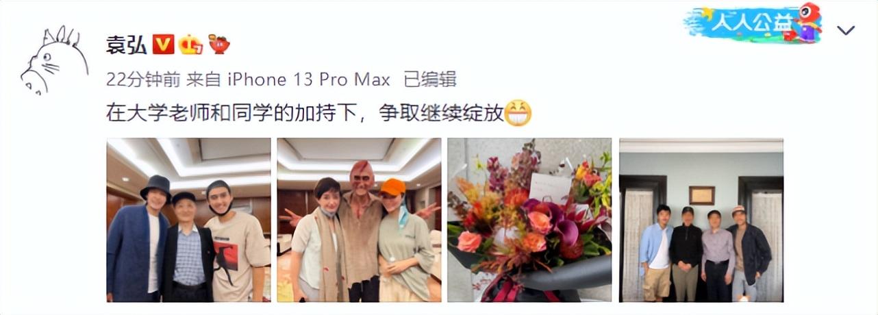 9月25日,袁弘主演话剧再获好友支持,这次到场的不仅有好兄弟胡歌,还有袁弘的大学老师。为此,袁弘特意发文写道:“在大学老师和同学的加持下,争取继续绽放”,不难看出,袁弘此时的内心定是备受鼓舞的。