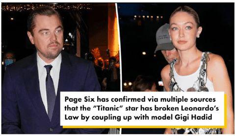 几周前,小李子和 25 岁的模特兼演员卡米拉 · 莫罗内(Camila Morrone)分手,结束了这段四年的恋情。在两人分手后,这位奥斯卡影帝的感情生活在网络上引起热议,大家发现他似乎只和 25 岁以下的女性约会。然而,如果莱昂纳多和吉吉被证实真的在一起,这将打破这个循环,因为吉吉已经 27 岁了。此外,吉吉和前男友泽恩 · 马利克(Zayn Malik)有一个两岁的女儿,这将使得吉吉成为莱昂纳多公开的第一个有孩子的女友。