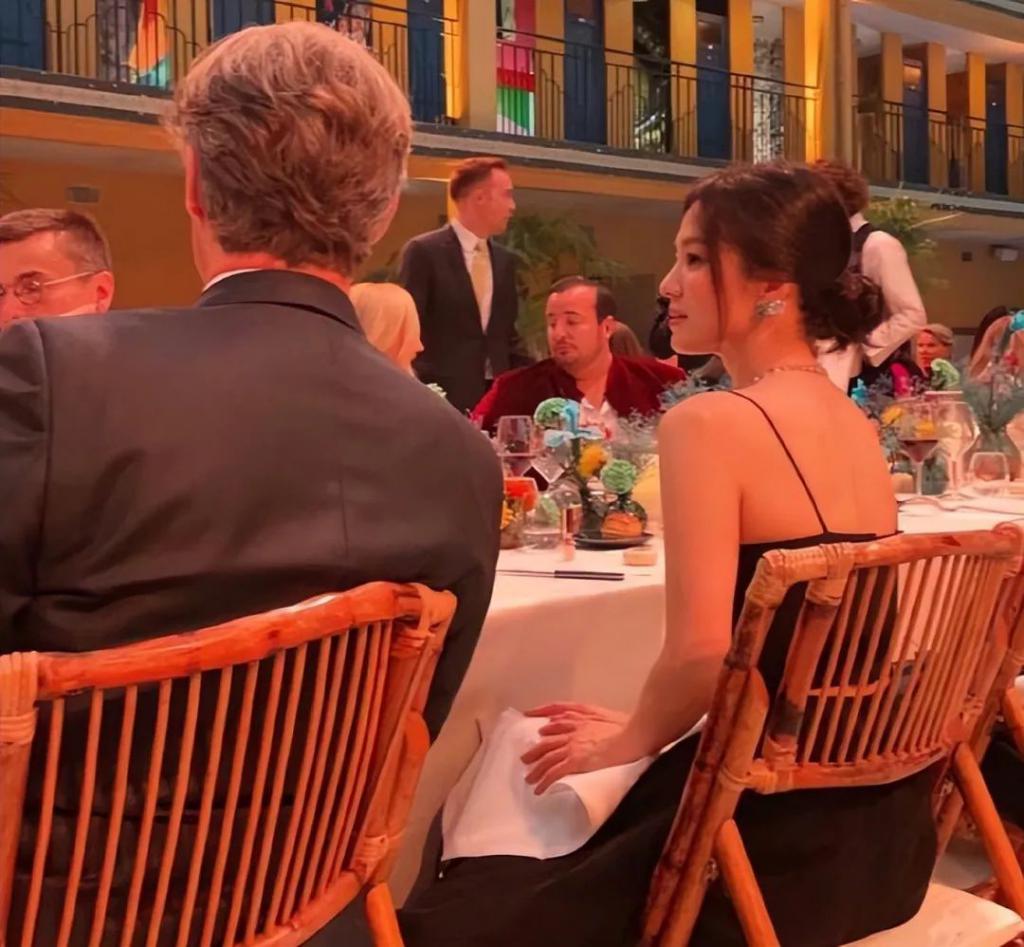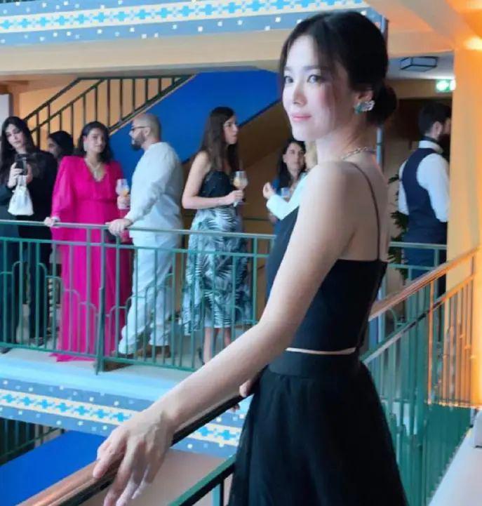 宋慧乔在巴黎参加晚宴:穿黑色吊带裙气质独特,肩颈线条非常优美!