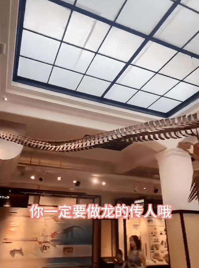 7月18日,张兰带孙子和孙女参观恐龙博物馆。