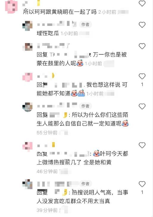 近日,黄晓明疑似与叶珂恋爱引发网友热议。有网友询问女方好友二人是否在一起了,对方回应:“理性吃瓜,当事人没发言吃瓜群众不用太当真”,同时否认黄晓明出现在叶珂生日宴会上。