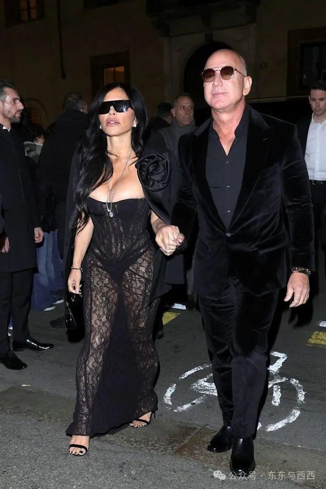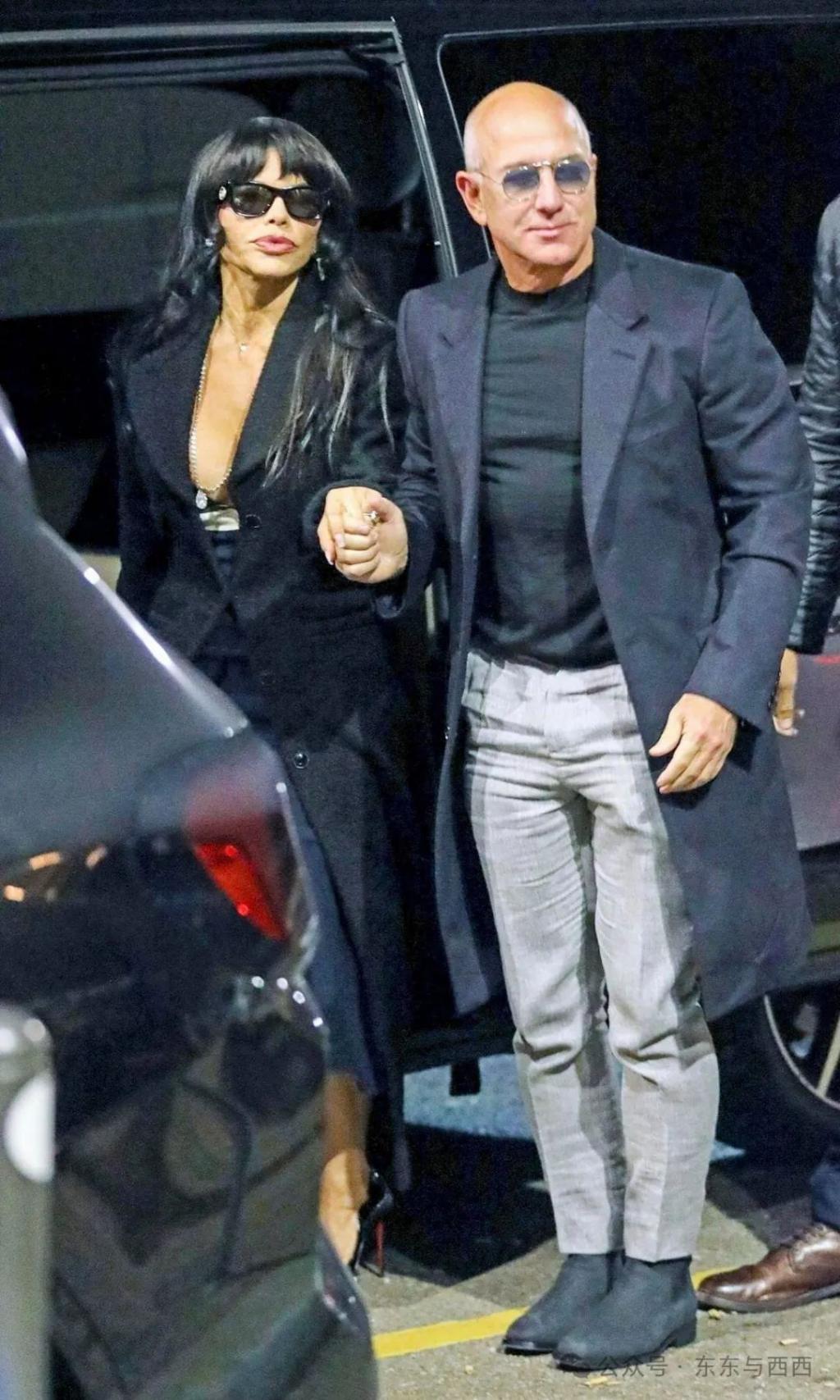 贝佐斯穿丝绒西装,没有打领带,两人一路手牵手,有钱人的审美咱普通人经常看不懂 ↓↓