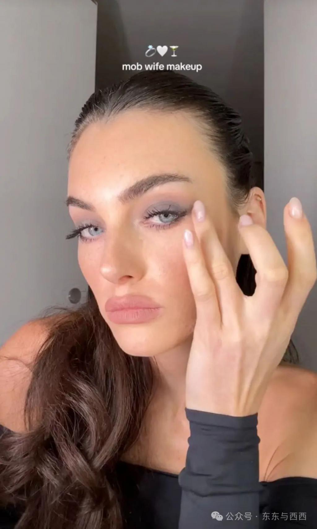 TikTok 上还有很多 " 暴妻妆 " 化妆教程,统一有浓重的眼妆和厚厚的嘴唇 ↓↓