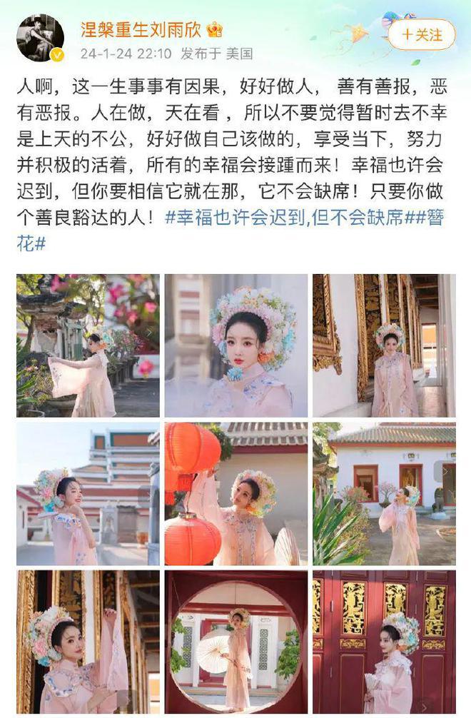 果然,刘雨欣发了文章,暗讽她的报应来了?