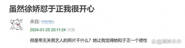 不过,也有网友认为,徐娇为了朋友和于正隔空理论,这个可以理解,但她为了回怼于正要去吐槽毫不相关的男演员,是否有一点不太妥当。随后,这位网友的想法遭到了其他人的反击,认为于正对女演员太过苛刻,大众对于男演员的要求实在太低,徐娇站在女性朋友的立场上吐槽没有什么错。