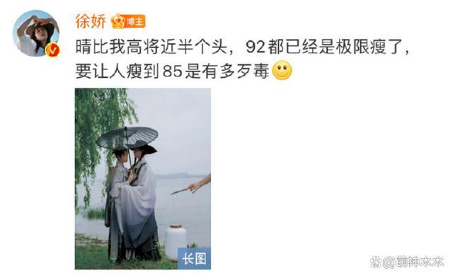 徐娇还在评论区发文解释,表示赵晴比自己高半个头,减肥瘦到 92 斤已经是极限了,要让她瘦到 85 斤是有多歹毒。徐娇身高至少应该 160,赵晴比她高不少,估计 170 左右了,这个身高要是体重 85 斤,身体真的可能会出现问题。