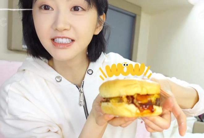 而且景甜似乎并没有饮食焦虑,吃完饭还惦记着吃甜品,有一天中午更是吃了热量很高的馅饼和汉堡,伙食相当丰盛了。