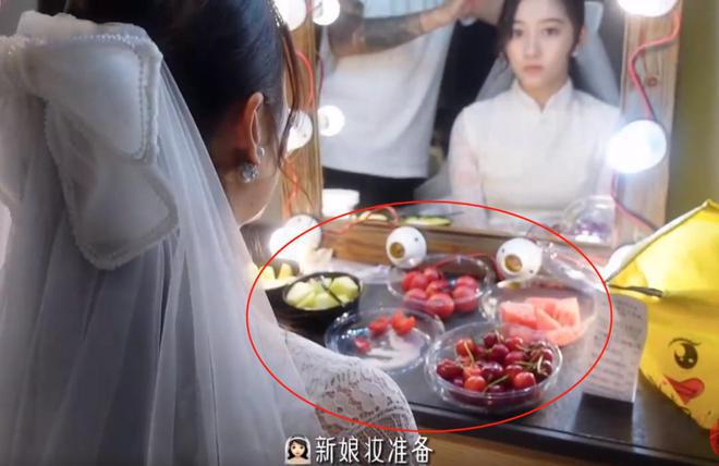 关晓彤在剧组里也是水果不断,化妆台前摆满了各种各样的水果,一看就是精心准备了。