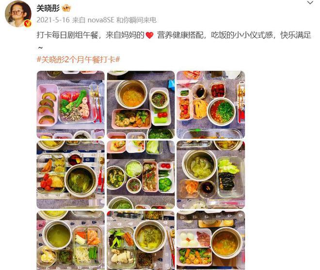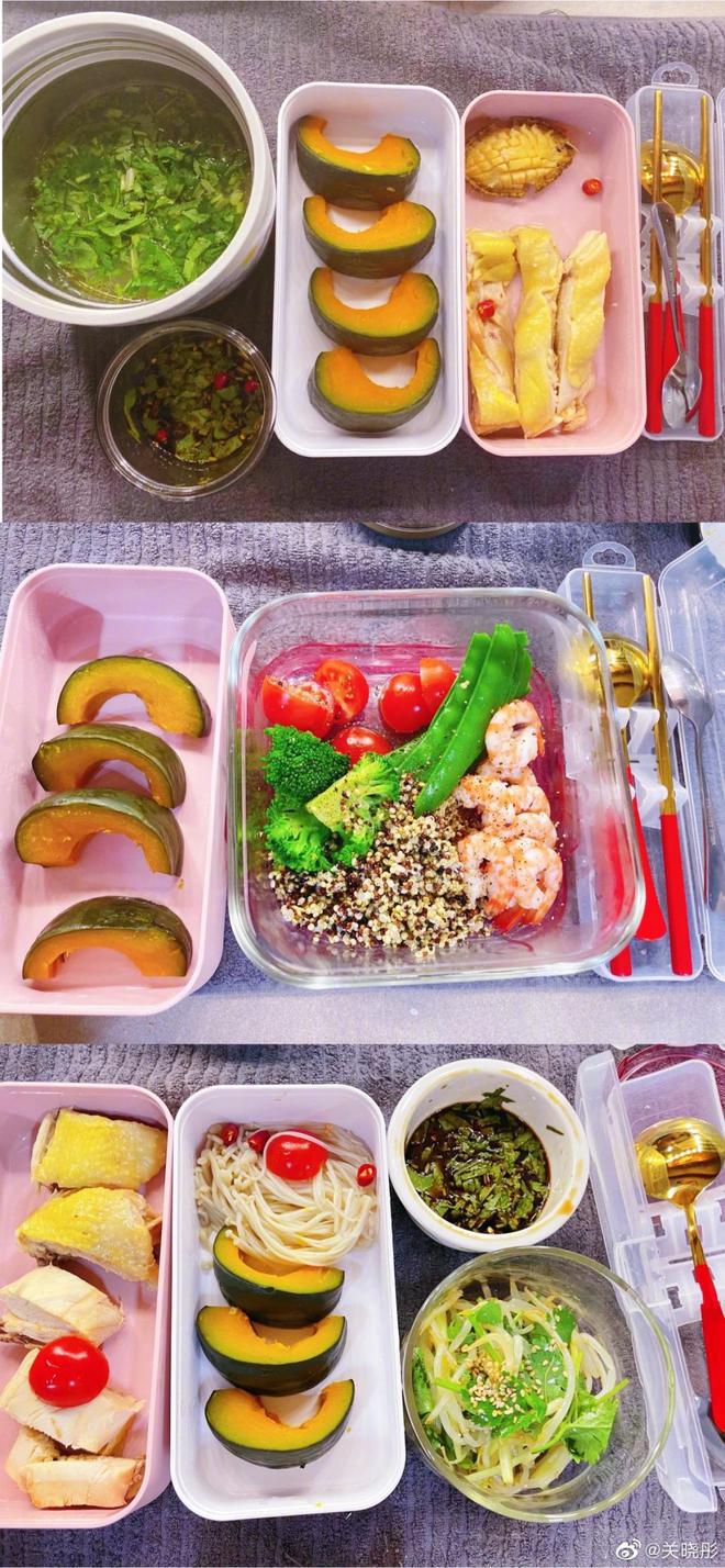 关晓彤的妈妈也跟组做过饭,关晓彤还晒出过妈妈给做的剧组午餐合集,营养搭配很是均衡。关晓彤一直有身材管理的困扰,可能也因为这样,她妈妈准备的饮食偏减脂餐。