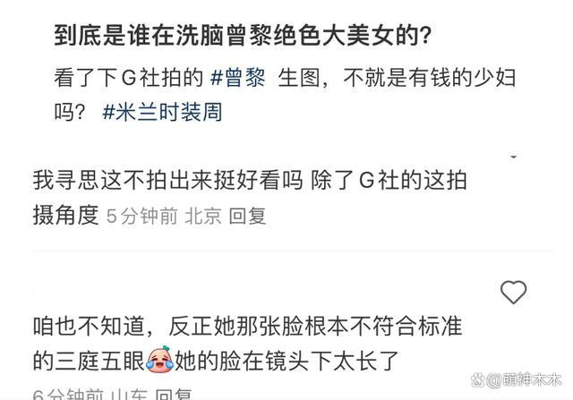 这种死亡角度不仅会缩短身高,更会考验颜值。在曾黎的生图中,她的脸部虽然线条顺畅,没有下垂的痕迹,但有种隐隐的僵硬,而且,人中也变得格外抢镜。