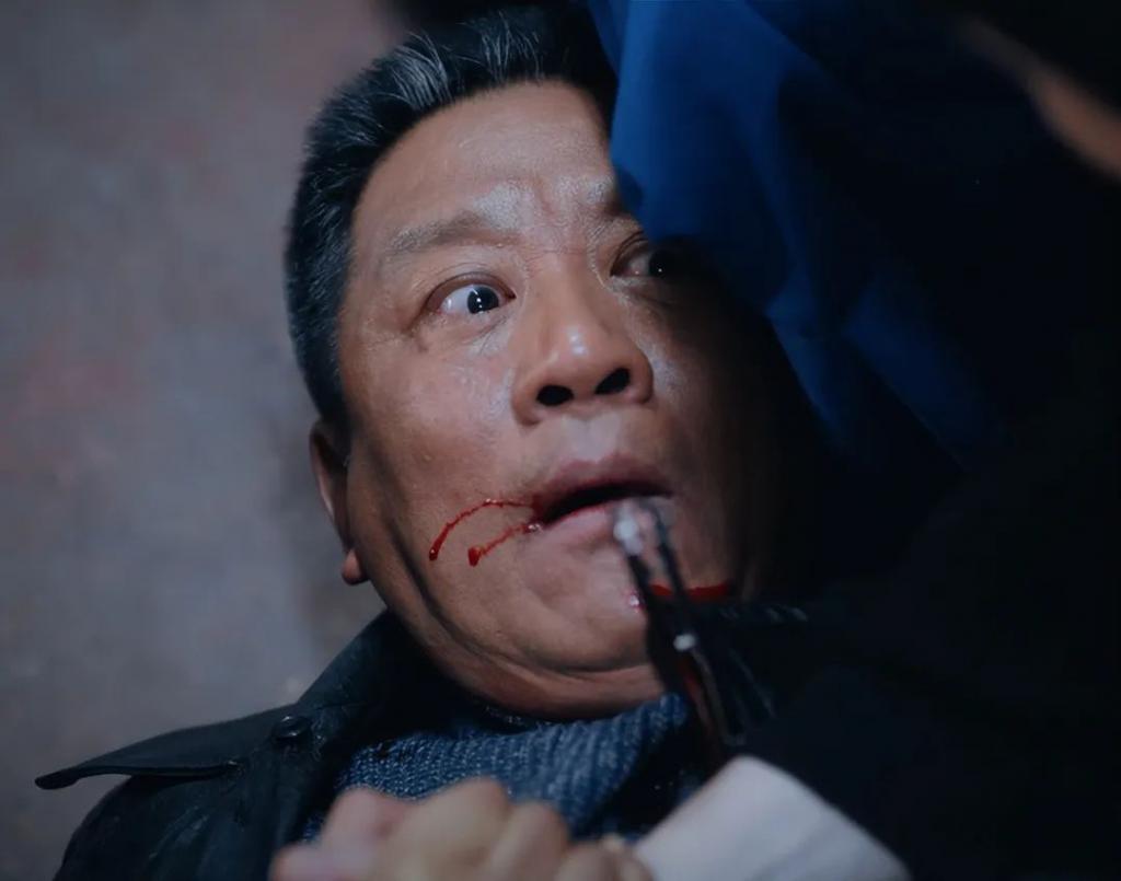 虽然伤口和妆容上差点意思,但在他的眼神中,观众完全能看到一个人在死前的生理反应,那是对死亡的恐惧,以及想说却无法开口的遗憾。