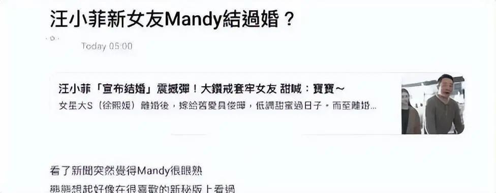 汪小菲宣布了一则耸人听闻的消息,他计划与台湾女友 Mandy(小梅)再婚,并且打算在今年将她娶回家。