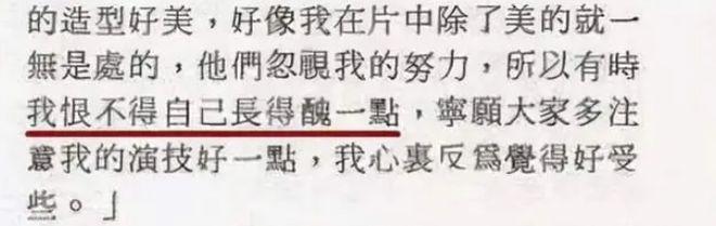 但王祖贤本人却一度觉得大家过分注意她的脸蛋,忽视了自己的实力,还说出:" 我恨不得自己长得丑一点 " 这种话,这也太凡尔赛了!