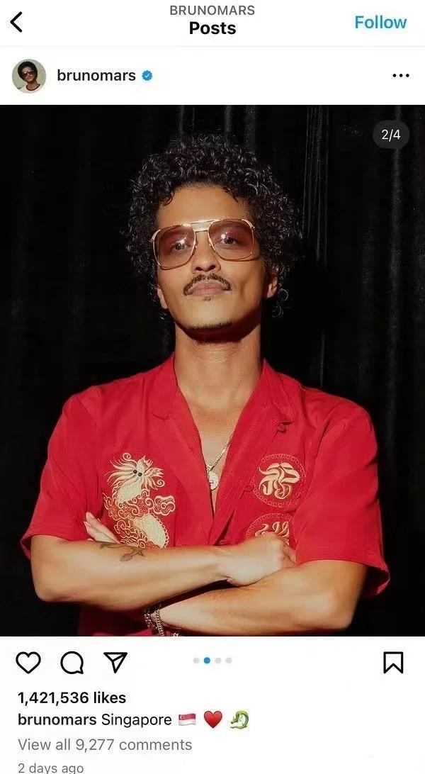 令人意外的是,当火星哥自己晒照片时,却把林俊杰截掉了。不懂就问,难道林俊杰这个咖位的歌星也需要被截掉吗?