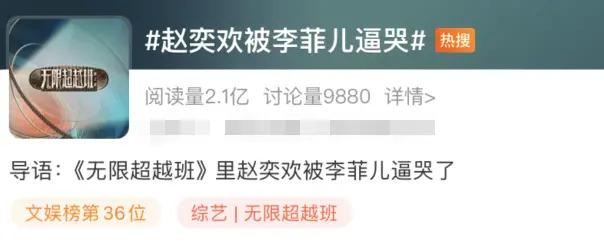 比如最新的热搜就是:赵奕欢被李菲儿逼哭,累计阅读甚至超过了 2 亿。