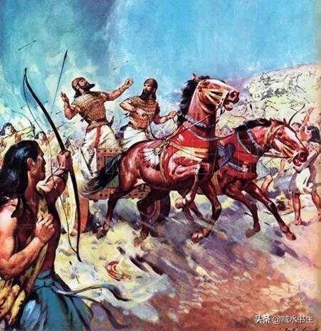 公元前1274年,古埃及帝国与赫梯帝国在卡迭石干了一仗。双方出动了几千辆战车,在旷野中互相对射,作战方式是高速冲锋战车拉着弓箭手搞射击游戏,不是战车冲撞。第一天,古埃及胜了,因为人多。但第二天,赫梯帝国出动了新式武器——铁轴战车。