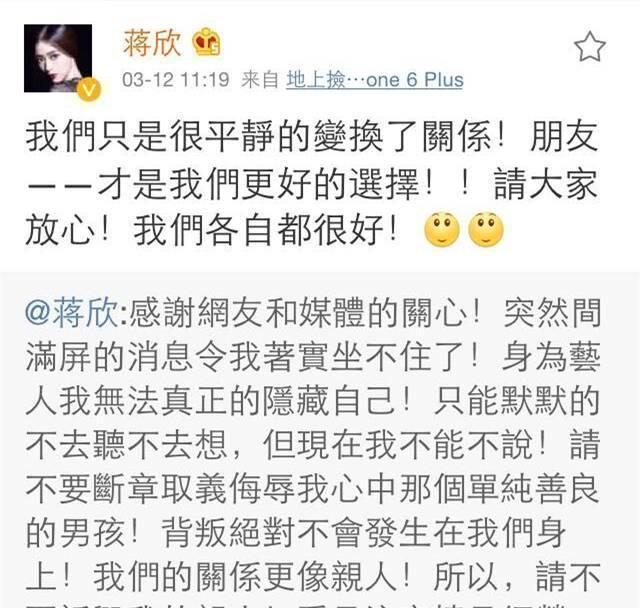 既然家长都同意了这段恋情,他们也不再隐瞒,终于在2013年11月11日,叶祖新和蒋欣在社交平台正式公布恋情,但这段感情终究没能走得长久。
