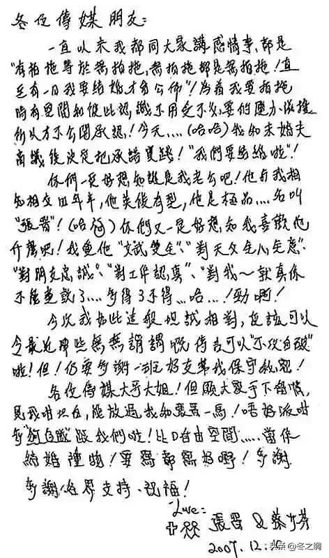 恋爱四年后,蔡少芬用一封手写信,向公众宣布了自己结婚的决定。信中一字一句,都毫不掩饰地展示了两人感情的甜蜜。