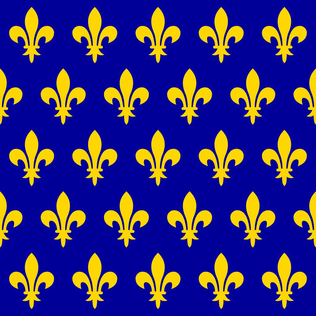 十四世纪时期,卡佩王朝的蓝底金百合旗帜。