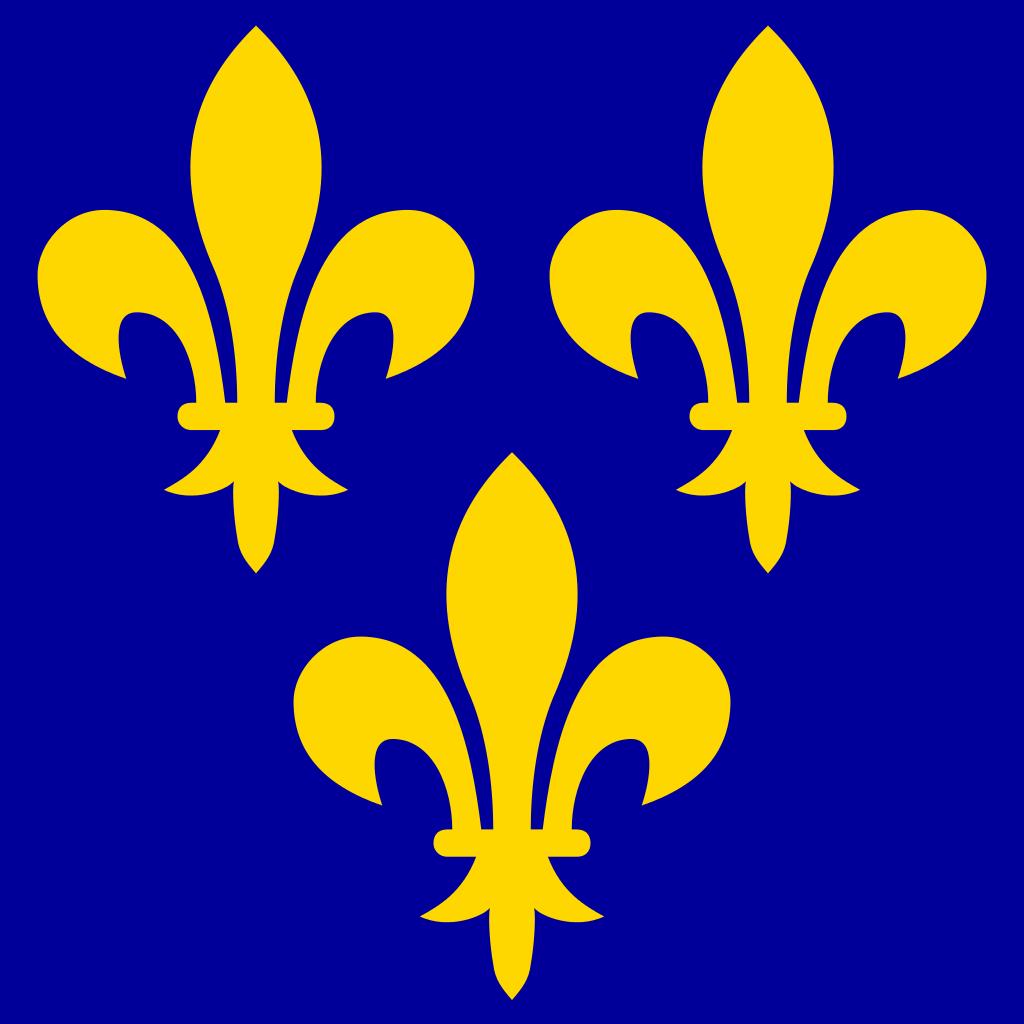 十二世纪时期,卡佩王朝的蓝底金百合旗帜。