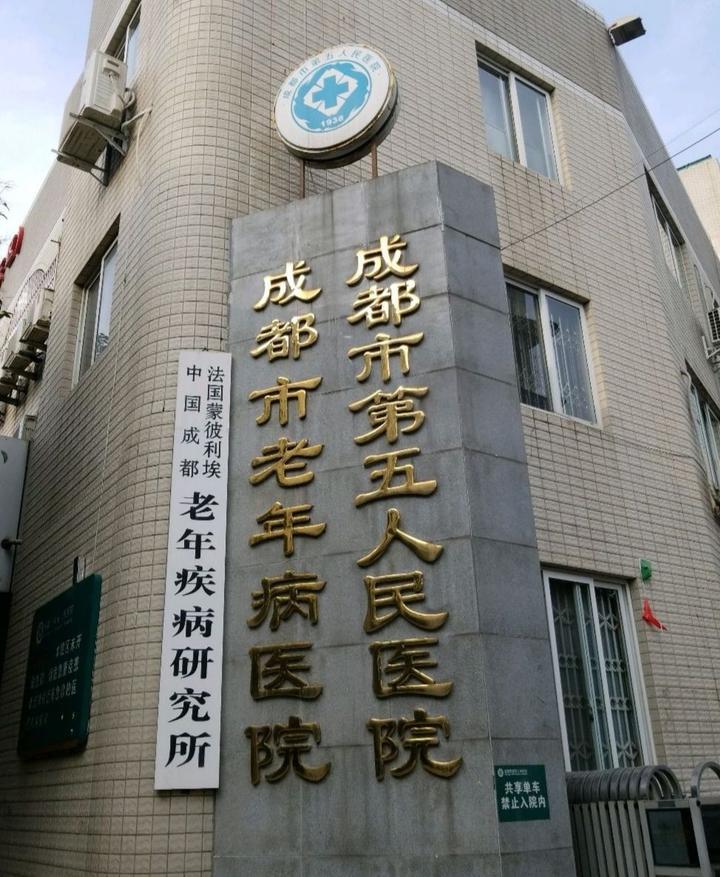 成都市第五人民医院(第二院名:成都市老年病医院 )原四川省温江专区人民医院,“双一流”成都中医大直属附属第五人民医院,成都中医大第二临床医学院。2021年国家卫健委的全国三级公立医院绩效考核排名四川省第四,全国124名,是除华西A++、省医院A+外,成都市内首次进入A+等级(全国前10%)的综合医院。肿瘤科获批2022年国家临床重点建设专科(市级医院目前四个“国重”之一)。有综合医疗(西区,麻市街)、老年健康(东区,原市老年病医院)、教培区(北区,始建于1959年3月的原温江地区卫生防疫站,1983年改名成都市第二卫生防疫站)和光华新城(在建)四个院区,市政府确定的成都西部区域医疗中心,地铁19/28号线市五医院站。现医疗服务辐射西部的温江、崇州、大邑、邛崃、都江堰、彭州、郫县、双流、青羊新城乃至甘孜、阿坝部分区域10余个市县,覆盖人口超500万。1938年9月温江县政府同抗战内迁成都的中央、金陵、金陵女子、齐鲁和华西等大学组织的“暑期乡村服务团”筹建“温江县诊疗所”,11月15日诊疗所成立,设在西街的城关城皇庙内。1940年6月扩建为“四川省立温江卫生院”,院址在城关鱼凫镇公园内农林学校侧,由罗氏基金团捐款,四川省卫生实验处、华西、中央、齐鲁三所大学给以定额补助,不足部分县政府拨款,隶属于温江县政府,接受四川省卫生实验处以及三大学公共卫生系联合委员会监督指挥。1942年3月被四川省政府指定为中央大学、齐鲁大学和华西协合三所大学医学院的公共卫生教学实习基地,改名“四川省第一行政督察区中心卫生院”。民国24年(1935年)四川设18个行政督察区,四川省第一行政督察区专员公署驻地温江县,辖温江、成都县、郫县、新繁、彭县、崇宁、灌县、新津、新都、华阳、崇庆、双流12个县。协和医学院博士、美国约翰斯·霍普金斯大学公共卫生学硕士、中央大学医学院公共卫生系主任俞焕文任院长,隶属于四川省第一行政区专员公署领导,业务由四川省卫生实验处领导。1945年改名“四川省第一行政督察区省立医院”,隶属于四川省政府,为四川省卫生处领导。曾是四川(含重庆)历史上最早的3个“省立医院”之一(另有今乐山市人民医院、四川省人民医院),时院址在温江县柳城镇温泉路。1950年5月军管会接收后更名为“温江中心卫生院”,并迁至麻市街现址。解放后沿袭了民国时的“行政督察区”旧行政建制,1950年四川设16大专区,1952年原四川省第一行政督察区调整并改名为四川省温江专区,1952年为四川省温江专区人民医院(专区最高时辖18个县),1966年专区人口469万,耕地面积757万亩。1969年为四川省温江地区人民医院(地区最高时辖14个县),当时与绵阳专区人民医院(今绵阳市中心医院,全国最大专区,最高时辖21个县)长期处于四川省(含重庆)医疗机构前两名,巅峰期就诊量比肩华西医院。1976年温江地区的双流县、金堂县划入成都市(城区今一环路内),1983年四川省温江地区12个县中的10个县(广汉、什邡划转给德阳市)和成都市合并后更名为成都市第五人民医院,2003年11月合并成都市中草药研究所,前身始建于1969年,位于新都县新繁镇的温江地区中草药研究所,1986年改名成都市中草药研究所,合并后又独立建所,2016年成都市卫生医药科技开发服务中心并入该所,加挂“成都市卫生计生药械科技服务中心”牌子,地址提督街。2011年10月合并成都市老年病医院,温江区万春东路,前身是成都市第二干部疗养院即温江地区干部疗养院(市第一干部疗养院即现成都市第八人民医院.成都市慢性病医院),始建于1982年5月,原成都市卫生局直属公立专科医院。2019年市五医院成为成都中医药大学直属附属医院。注:四川省第五人民医院是位于青羊区商业街的省委机关职工医院,前身是省直机关第二门诊部,二级甲等综合医院。