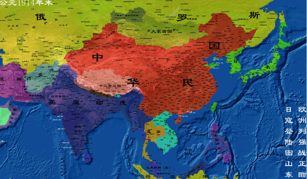 1914年末中华民国地图,“欧洲列强战正酣,日寇登陆图山东”