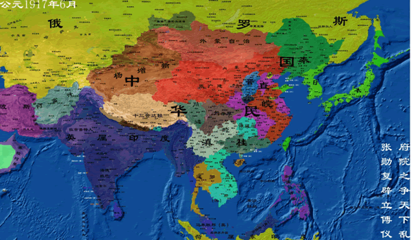 1917年6月民国地图,发生大事件:“府院之争天下乱,张勋复辟立溥仪”