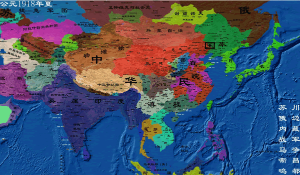 1918年夏民国地图:“川边藏军争昌都,苏俄内战马嘶鸣”