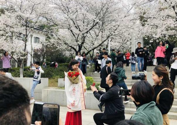今年的武大樱花节同往年一样行人如织,当此美景,很多游客都会选择拍照,而在武大樱花节总能看到一些中国女孩穿着和服攀花留影。