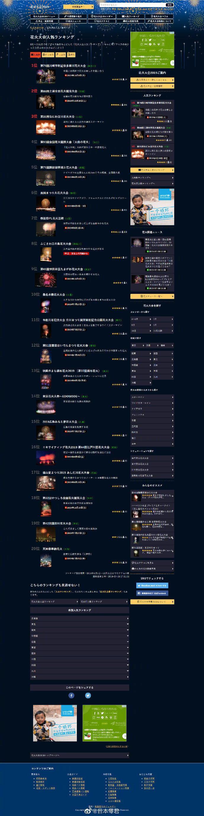 最全的日本花火大会具体时间表,包括最有人气的以及东京,神奈川,千叶,京都,大阪,奈良,九州等各个地方详细信息! 分享来自:日本零君