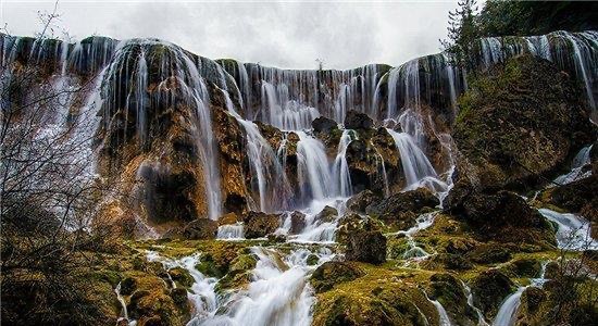 位于四川境内的珍珠滩瀑布海拔高度2443m,高为21m,是隶属于九寨沟风景区内的瀑布。它是自然的瑰宝,从形成到现在已经有了超过两百万年的历史,瀑布的水非常清澈,流下时就像从高处坠落的璀璨明珠一样美丽、壮观。