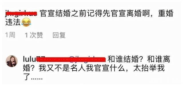 陈露本人则回复:和谁结婚?又和谁离婚?我又不是名人我官宣什么,太抬举我了……