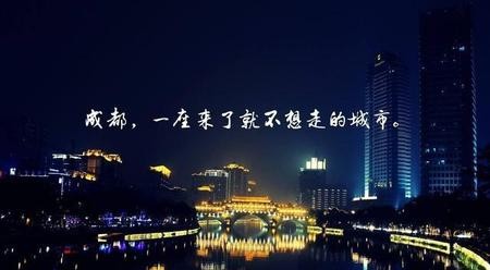 成都这个广告语也是牛,原创是张艺谋:原广告是,一座来了就不想走的城市,这个还不错,有感觉,成都历来的广告语、定位,太多了,不要再换了,就这句吧,如果还要换一次,要我说就叫天下乐土更好。