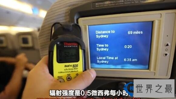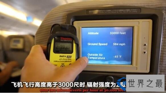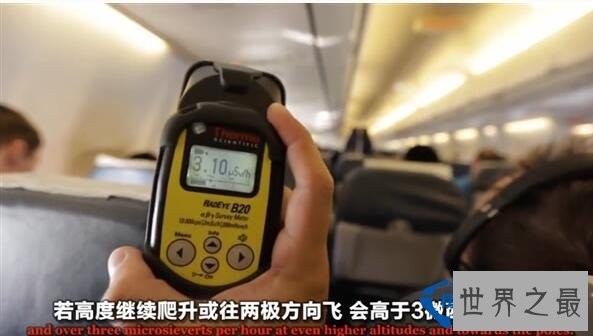 在飞机上受到辐射最大是在飞往两级时,这时的辐射剂量已经达到了3微西弗每小时。