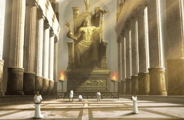 宙斯神像是古代希腊的众神之王,人们为了表达对他的崇拜,在公元前456年修建了神殿,据说这座神像存在了900多年,后来不知道什么原因消失。