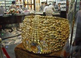 有钱人会用金戒指来体现自己的财力,可是世界上有着这样一枚金戒指--泰巴之星,它重达128斤、通体镶嵌钻石,价值更是达到了惊人的2000万,它是世界上最大的金戒指,小编查阅资料,果然还是迪拜的,迪拜果然多土豪,也只有那个富得流油的国度才能诞生这样的杰作。