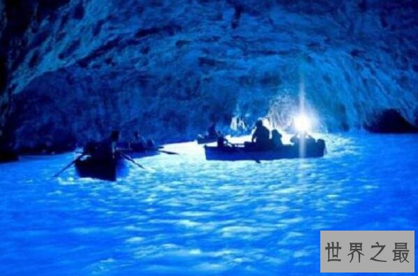 这座蓝洞是位于意大利南部卡普里岛的一处海蚀洞,洞口很小,在悬崖的下面,只能乘坐小船进入,洞内的海水是美丽的晶蓝色,就连岩石也被太阳光反射成蓝色。