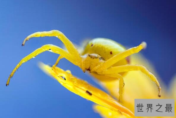详细情况:这种蜘蛛是蟹蛛科的一种蜘蛛,常见于雏菊和向日葵等花卉上,虽然它们经常以黄色示人,但它们如果白色的花朵上就会相应地改变自己的体色与新的背景相匹配,不过它们也只能在黄色和白色之间相互变换。