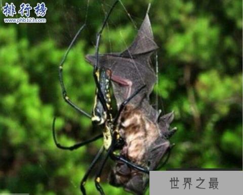 这种蜘蛛可以织出巨大的网子,然后来捕捉猎物,甚至于有一种比较大无畏的精神,喜欢以庞大的蝙蝠为主。当蝙蝠飞入飞入他们的网状物时,它们就会抓住它们,然后将之吃掉。