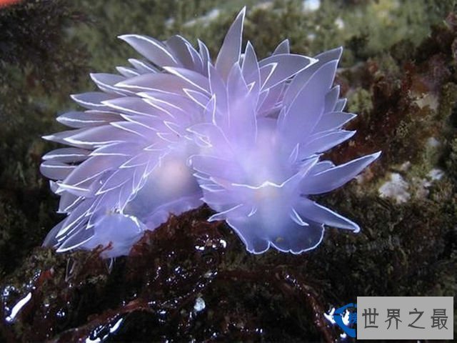 这种海蛞蝓身上的指状露鳃又多又长,虽然照片中的他是白色,但他也有可能是橘色或玫瑰红色,最多可以长到18公分 (7英尺) 呢!