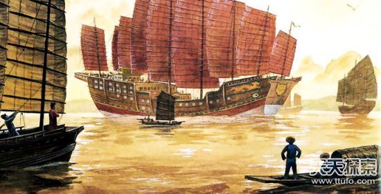 10、郑和船队中的宝船排水量接近航母?