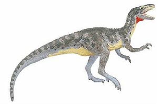 虚骨龙整体身长有2.4米,体重能够达到20千克。还有一个别名叫做空尾龙,主要是因为这种恐龙的围追内部属于空心。其身材属于中等,一般会用两个后置进行行走,但是前置也比较强壮,一共有三个爪子,主要的作用是抓捕猎物。