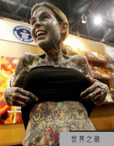世界上纹身最多的女人,朱莉亚·吉娜斯(连私处也未能幸免)